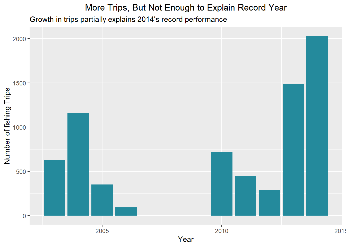 x = "Year", y = "Number of fishing Trips")+
