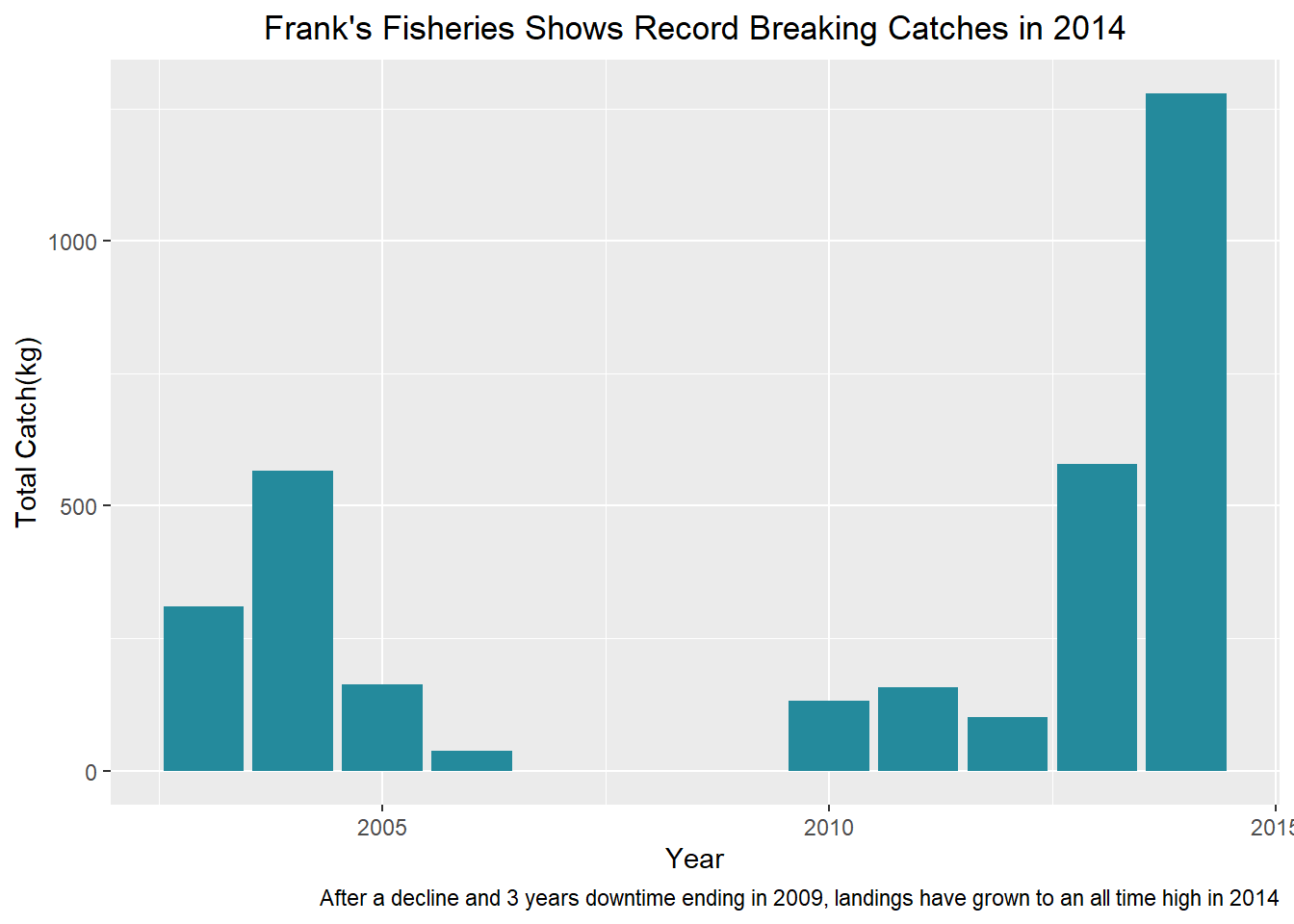 labs(title = "Frank's Fisheries Shows Record Breaking Catches in 2014",