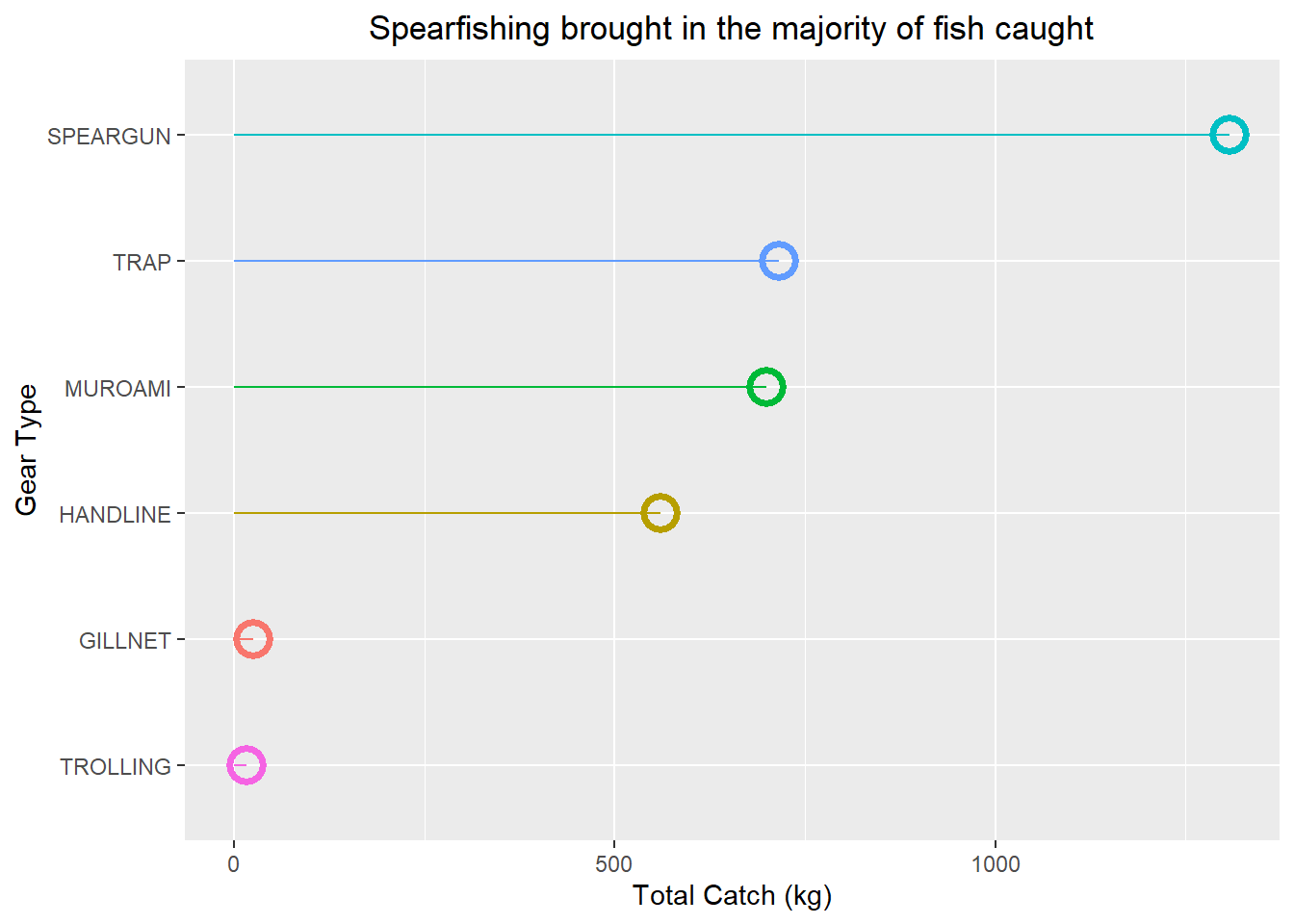 labs(title = "Spearfishing brought in the majority of fish caught",