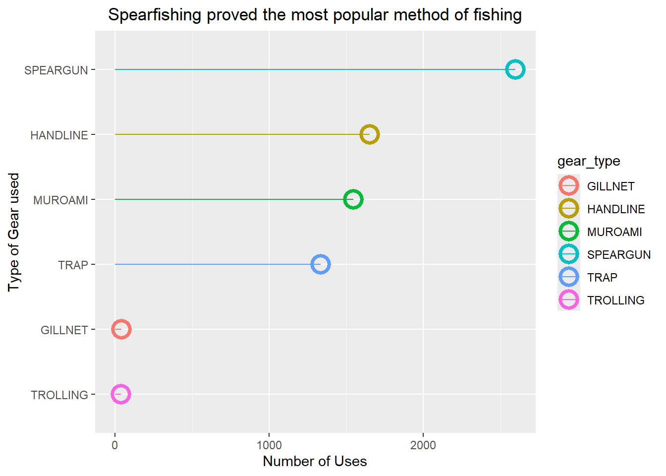 labs(title = "Spearfishing proved the most popular method of fishing",